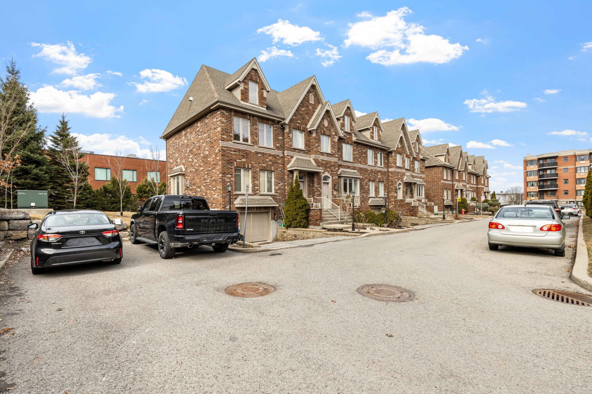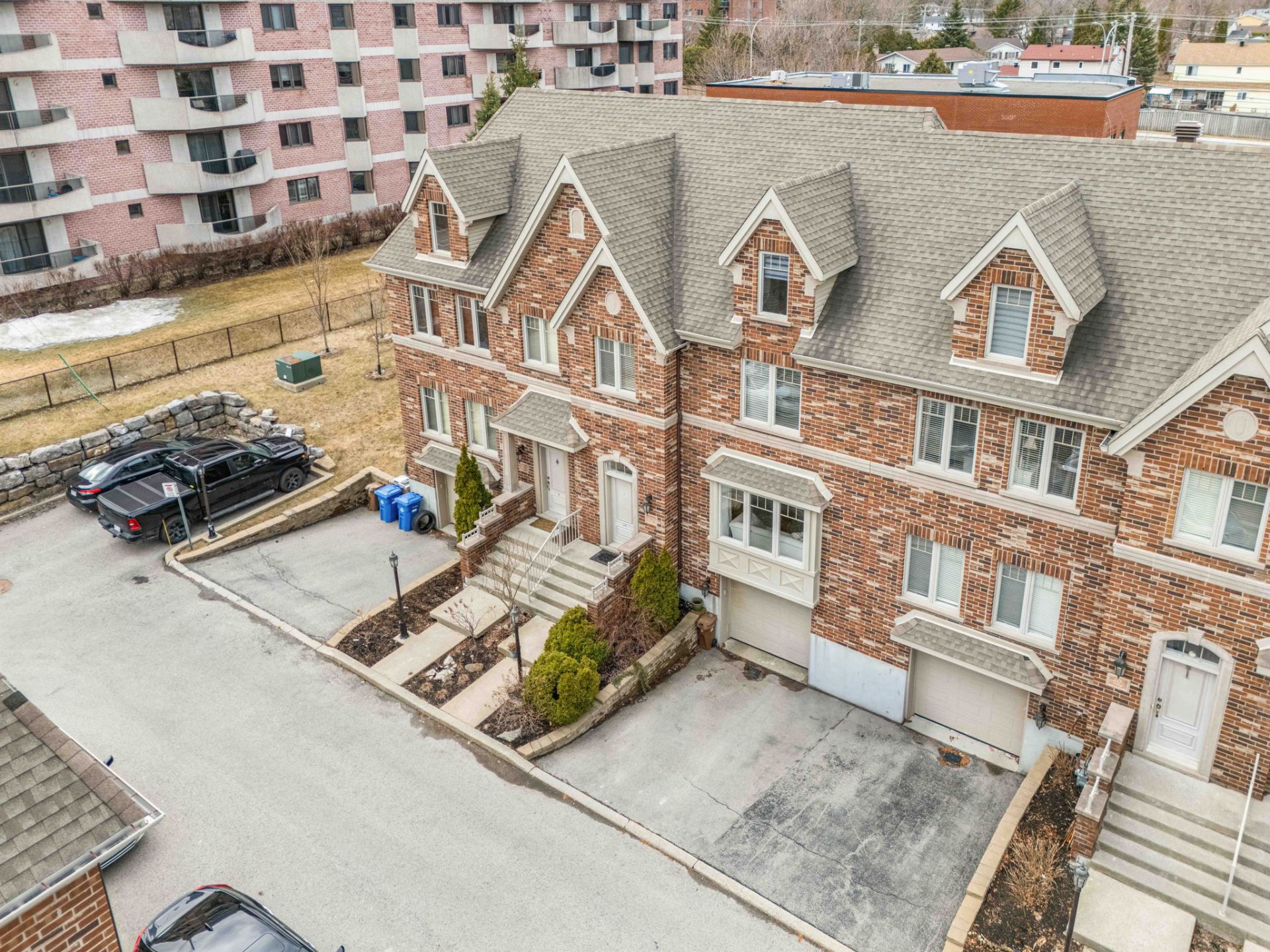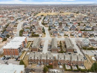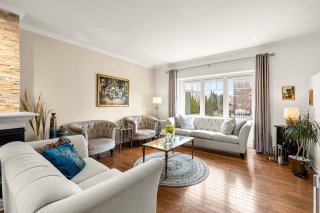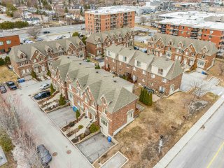 Over 2000 SF of elegant, well-maintained 2010 Grilli townhouse with upscale finishes. Open-concept living/dining, wood floors, fireplace. Gourmet kitchen with granite and built-ins, opening to fenced yard. 3 bedrooms on upper level, luxury bath. Bright mezzanine with full bath (office/family room or 4th bedroom). Finished basement (playroom or 5th bedroom with closet/window), laundry, storage, garage. Condo fees include snow, landscaping, maintenance. Prime: 2 stops to St-Jean, 5 min to Hwy 40 E/W.