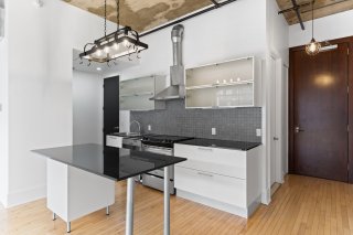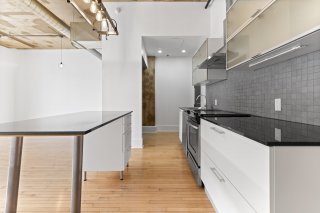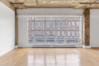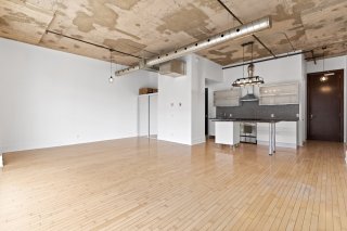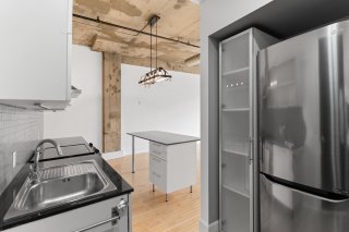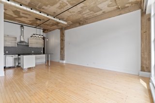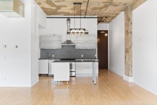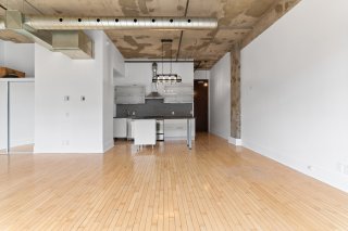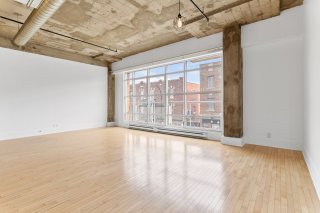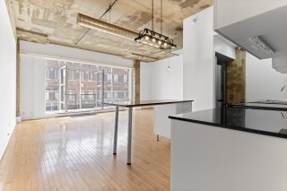 Bright industrial loft in the heart of the Plateau, inside the iconic Paris Lofts (former Paris Star factory, 1952, converted in 2005). The space delivers a striking sense of volume with concrete ceilings, large south/east-facing windows, original Italian kitchen, and central air. One open bedroom (glass partition or bookcase wall easily added), 700 sq ft, with a generous indoor parking spot included. Shared rooftop terrace with spectacular views of downtown and Mont-Royal. Walk Score 100: Mont-Royal and the Métro are minutes away, a BIXI station right out front, and all the neighbourhood's best cafés and restaurants at your doorstep.
