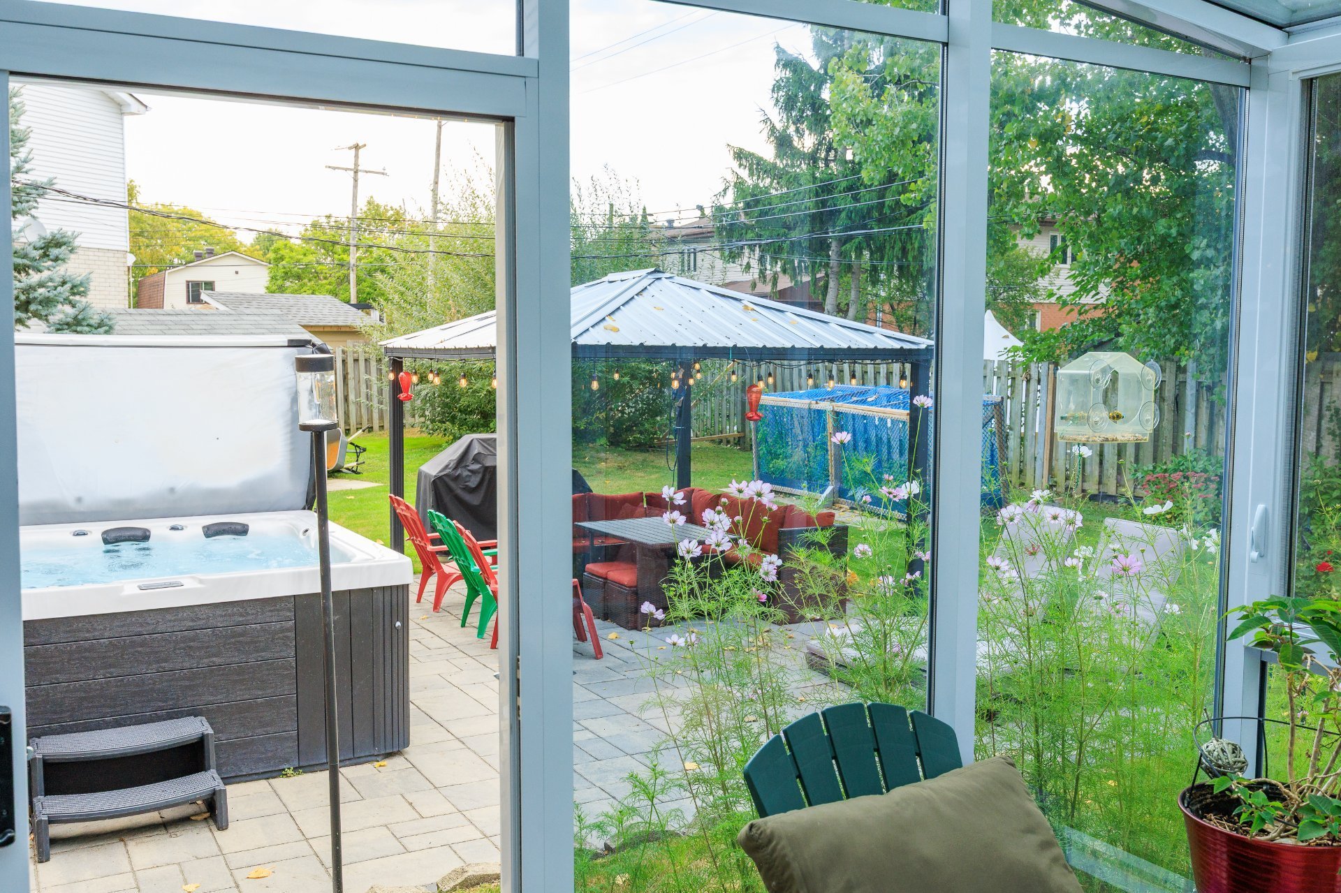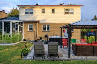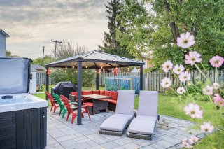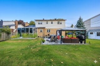 Spacious 4+2 bedroom, 3+1 bath home in the heart of Kirkland, steps from the future REM and top schools, including Émile-Nelligan Elementary (public) and Maternelle Marie-Claire (private). Features a 4-season heated solarium (2020), Pave-Uni patio, spa, and private backyard with gazebo -- perfect for relaxing or entertaining. Heated floors in the kitchen and ensuite, newer windows (2015), cozy family room with fireplace, finished basement, and central heat pump for year-round comfort.