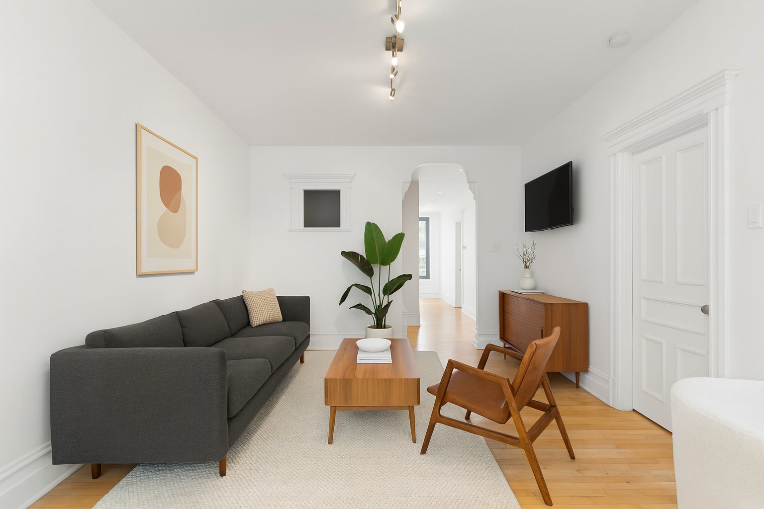 Beautiful apartment in a century-old building in Outremont. On the 2nd floor, it comprises an entrance hall, a large central space, 2 bedrooms, one of which is a double room currently used as a living/dining room, and a bright kitchen. At the foot of Mount Royal, a few steps from famous places like Leméac, Boutique 5th Avenue boutique, Outremont Park, and Laurier Avenue. Intimate balcony at the back to enjoy summer evenings. Public and private elementary schools under 2 minutes walk. Outremont and Laurier subway stations within walking distance. Family-friendly neighborhood, community life at its best.