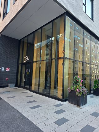 Near grocery stores, cafés, restaurants, SAQ, pharmacies,
