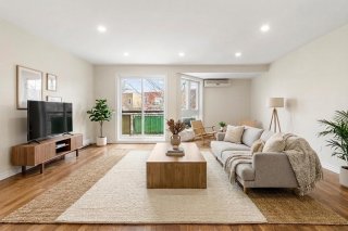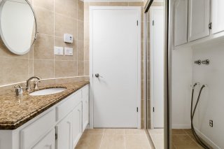 The unit features 2 spacious bedrooms, providing a pleasant environment for a small family, professionals, or a home office setup. The full bathroom includes a convenient laundry area, adding practicality to everyday living.