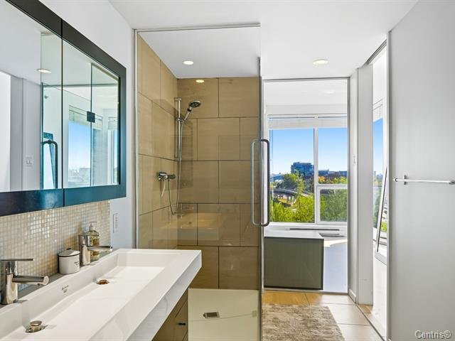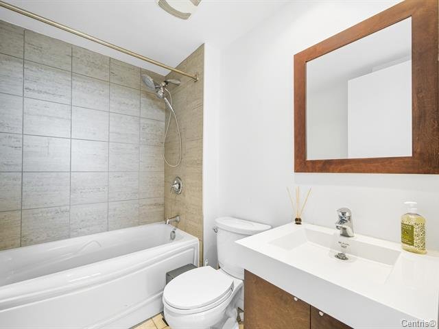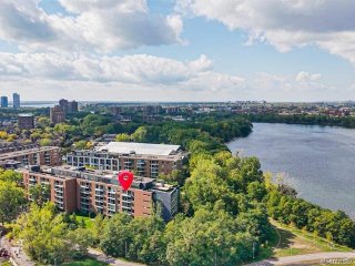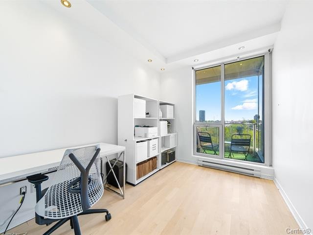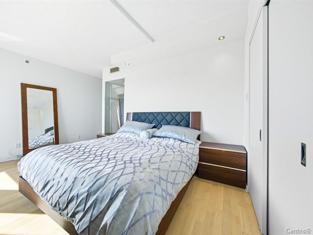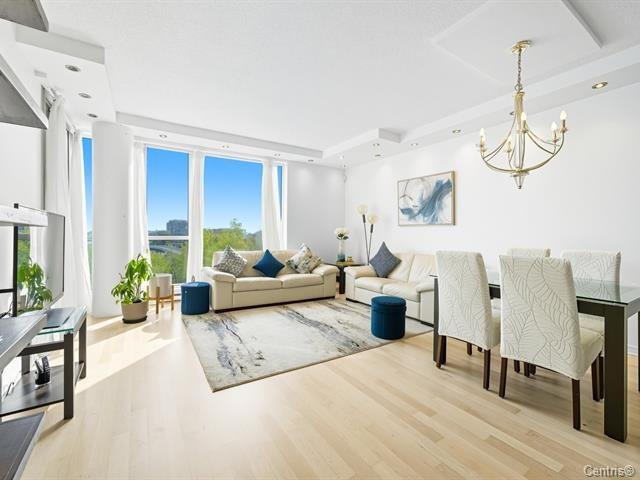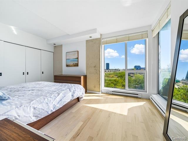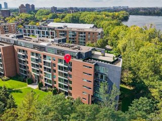 Concrete 6-storey building at the entrance of Île-des-Soeurs with 9-ft ceilings and two high-speed elevators. Bright, newly renovated 6th-floor unit featuring an open-concept layout, modern kitchen with new appliances, oak engineered flooring, and fresh Benjamin Moore paint. Primary bedroom with California closet and ensuite bathroom, plus a second full bathroom. Balcony with sunrise exposure and South Shore views. Includes 1 indoor parking space and 1 storage locker. Well-managed building with low condo fees and strong reserve fund. Steps to REM, public transit, shops, parks, bike paths, major highways, and quick access to downtown.
