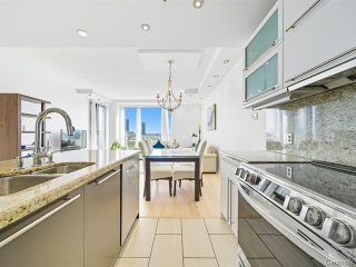 kitchen with sleek finishes and brand-new appliances. The