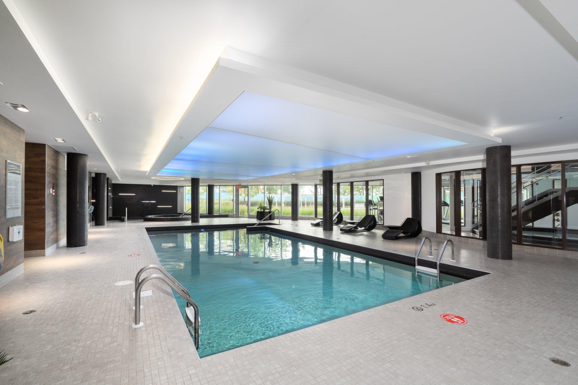 Residents enjoy a resort-inspired environment featuring: 24-hour security A grand, elegant lobby Heated indoor and outdoor pools Spa with Nordic bath, sauna, and steam room Fitness and aerobics center Reception spaces Guest suites Beautifully landscaped grounds with direct access to waterfront paths