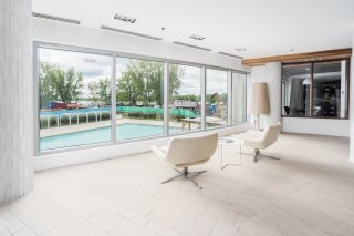 Symphonia POP offers a truly elevated lifestyle at the southern tip of Nuns' Island, where riverfront living meets refined design. Set along nearly 1,000 feet of shoreline, this prestigious address is renowned for its striking architecture, superior concrete construction, and exceptional common areas.