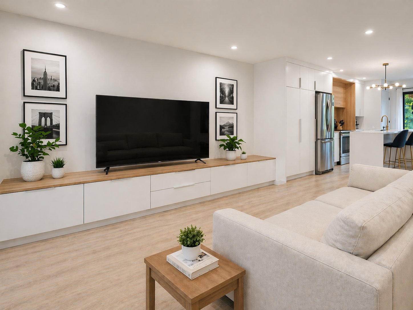 2 well-sized bedrooms Open-concept kitchen, living, and dining area Modern kitchen with large quartz countertop and direct access to rear balcony Spacious bathroom with integrated washer and dryer Heat pump for year-round comfort Rear balcony with storage Exclusive right to build a private rooftop terrace (subject to municipal regulations)