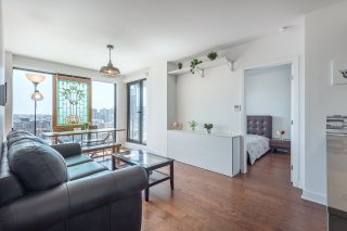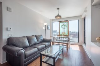 Modern condo in Ville-Marie. Enjoy upscale living in this beautiful condo located in a well-maintained building with stunning common areas. Just a few minutes walk from the metro, this spacious unit offers comfort, style, and a prime location in the heart of the city.