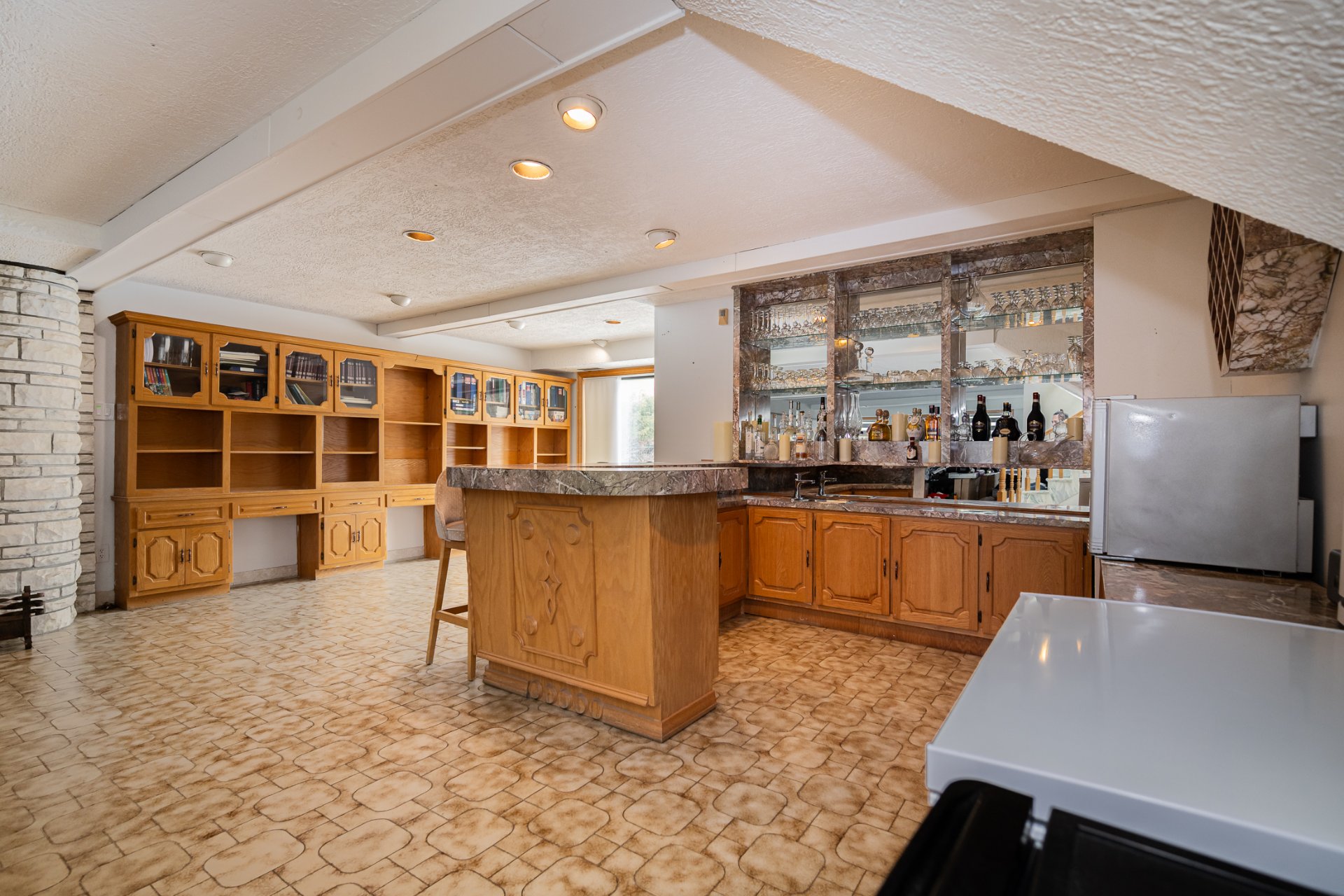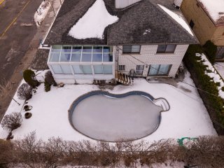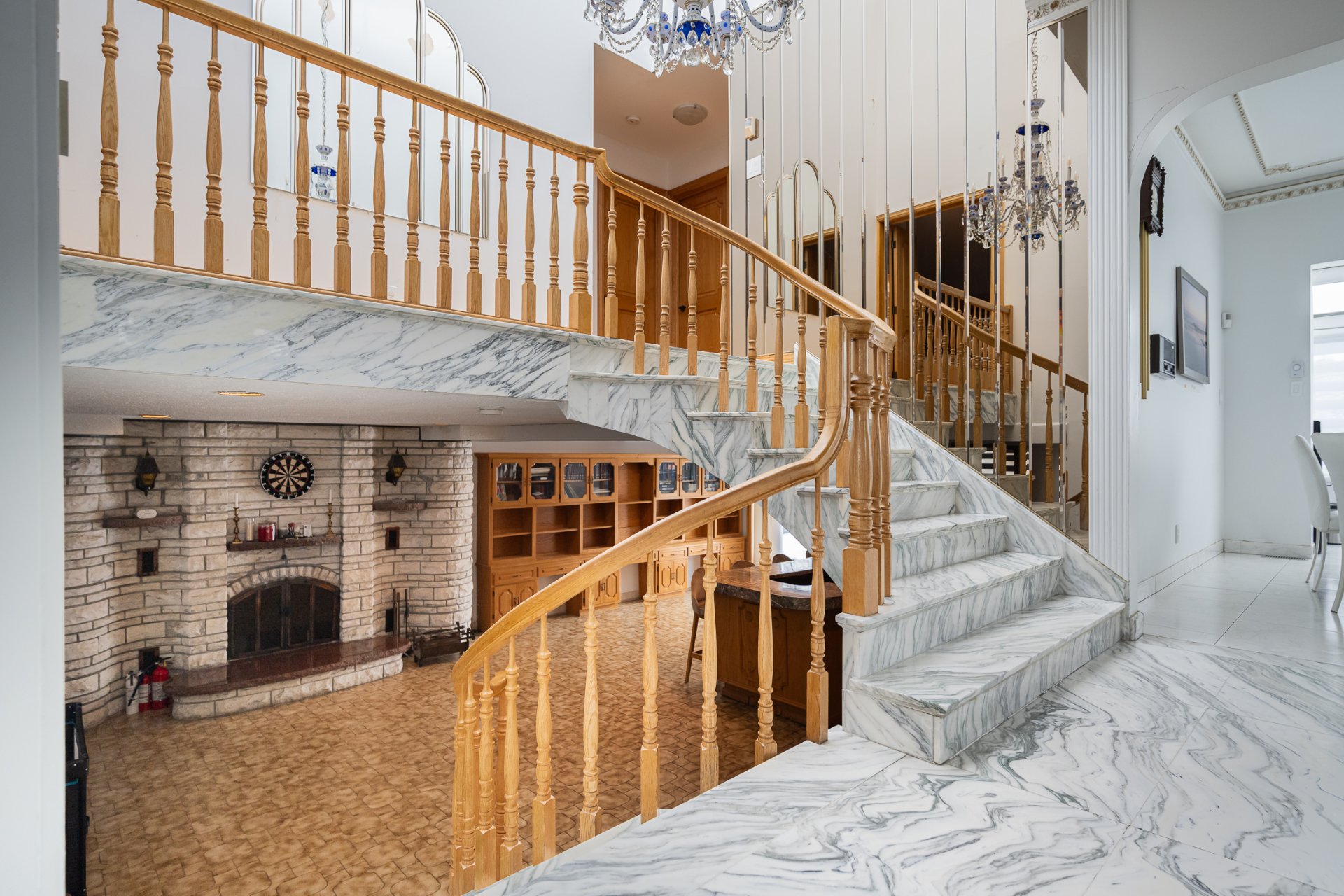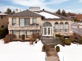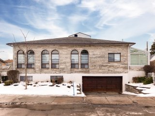 Impressive 4-level split built in 1981, corner lot in Ahuntsic. Featuring a stone façade, bright and spacious interiors with arched windows and skylight, offering 4 bedrooms on the upper level, 3 full bathrooms, separate dining room, large kitchen with island opening onto a solarium, finished basement with family room, wet bar, and fireplace. The backyard includes an in-ground pool, double garage access via Toupin Street. Ideally located near Bois-de-Saraguay Nature Park, Rivière des Prairies, the REM, highways 13 & 15, schools, parks, services, and Sacré-Coeur Hospital. A rare opportunity with exceptional space and outstanding potential.