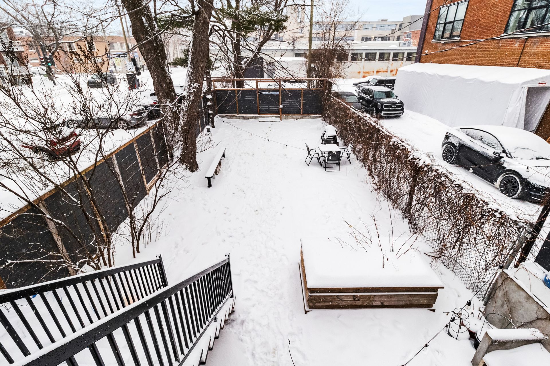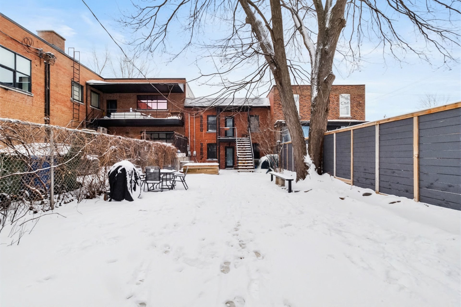 outdoor space. The building's position at the back of the