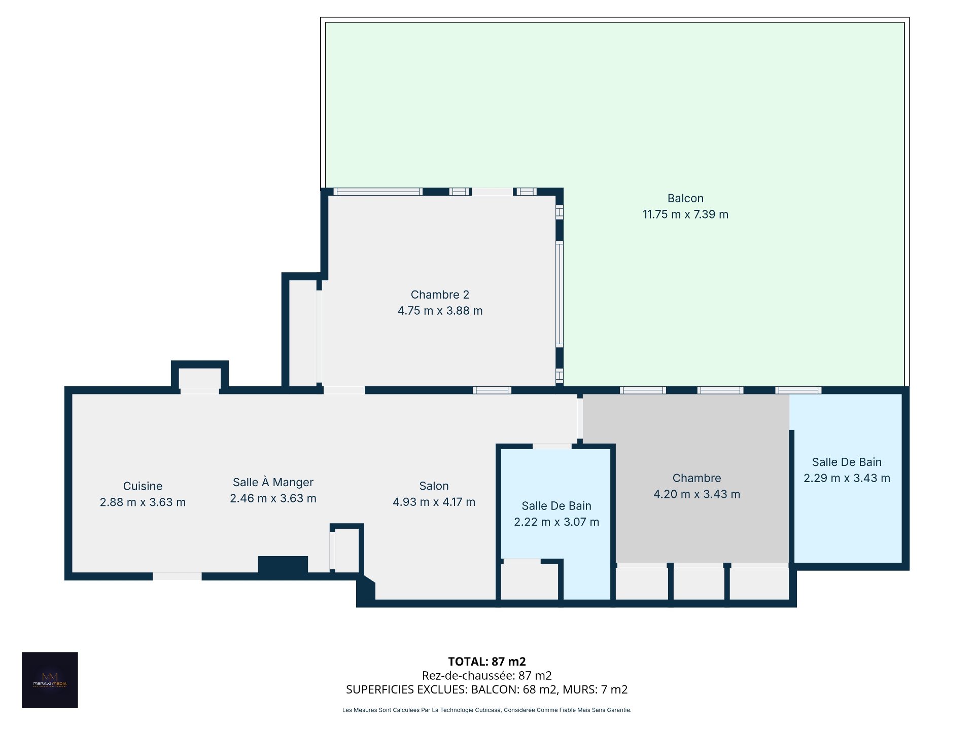 | Veranda | 11.75 x 7.39 M | 3rd Floor | Wood |