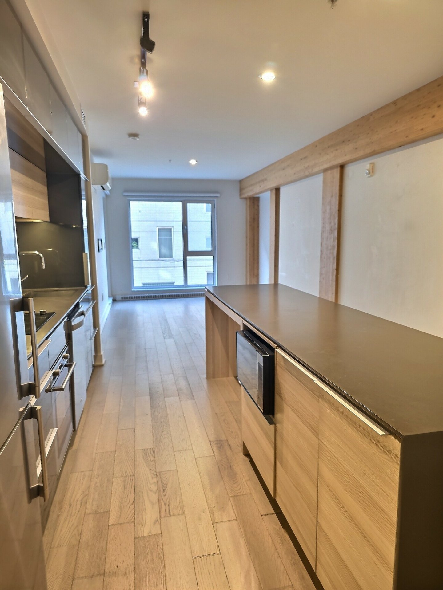Superb condo located in Phase 2 of the Arbora project, in the heart of Griffintown, on a quiet street. Featuring 1 spacious bedroom, an elegant bathroom, open-concept living space with modern kitchen, a private balcony, and a storage locker. Ideally located within walking distance of Lucien-L'Allier metro, with a bus stop at the door. Close to grocery stores, SAQ, restaurants, cafés, the Lachine Canal, parks, universities and more. Enjoy the building's outstanding amenities including an outdoor pool, sauna, and fully equipped gym.