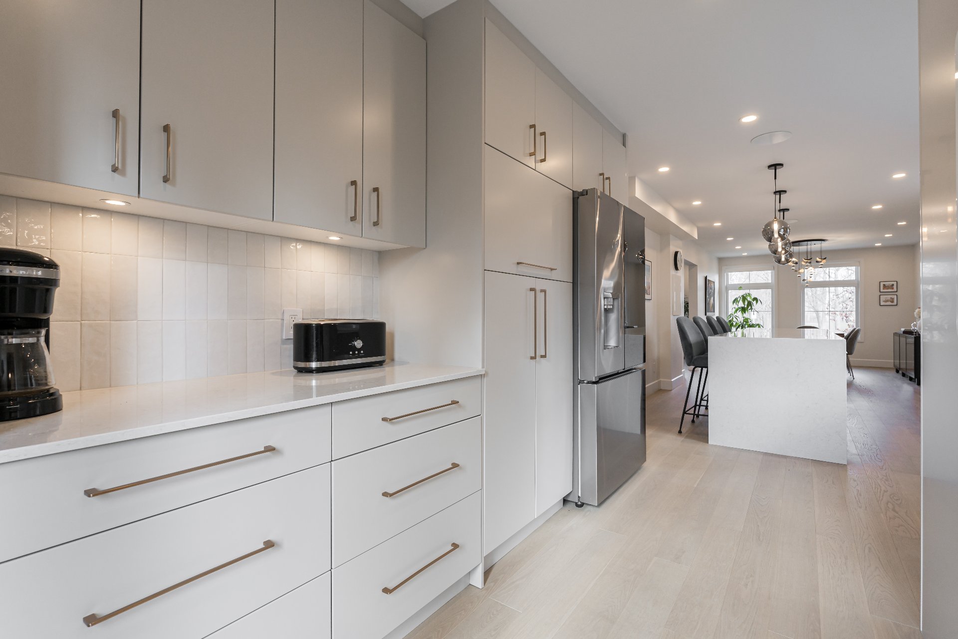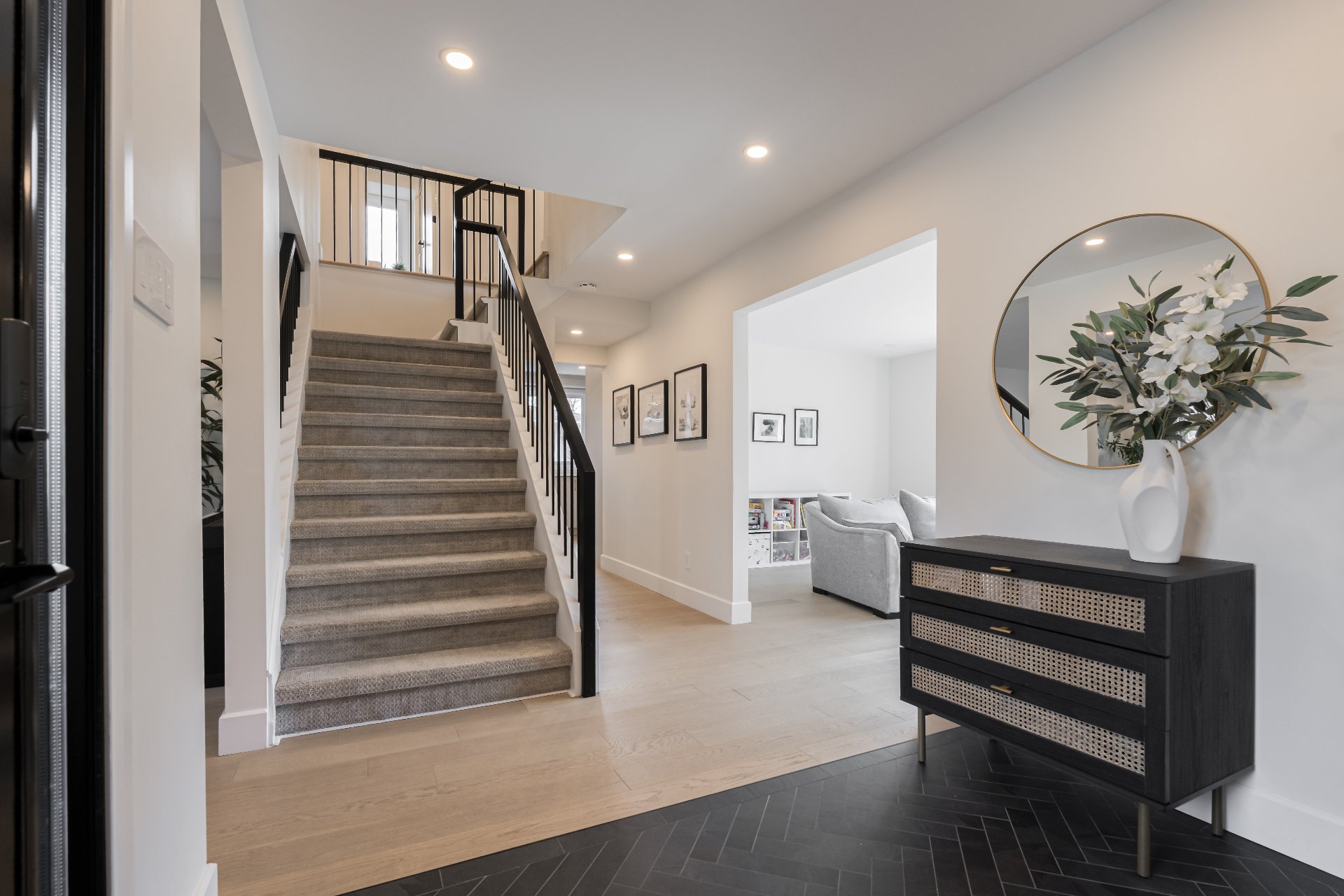 Step inside to heated black ceramic floors in the entrance, leading to warm engineered oak floors throughout the main and second levels. The modernized staircase and railings welcome you to an expansive open-concept kitchen and dining space. Custom cabinetry, quartz countertops, an induction stovetop, double wall oven, beautiful fridge and a dedicated coffee nook. The powder room is fully redesigned, and all lighting fixtures, wiring, and smart switches have been upgraded.