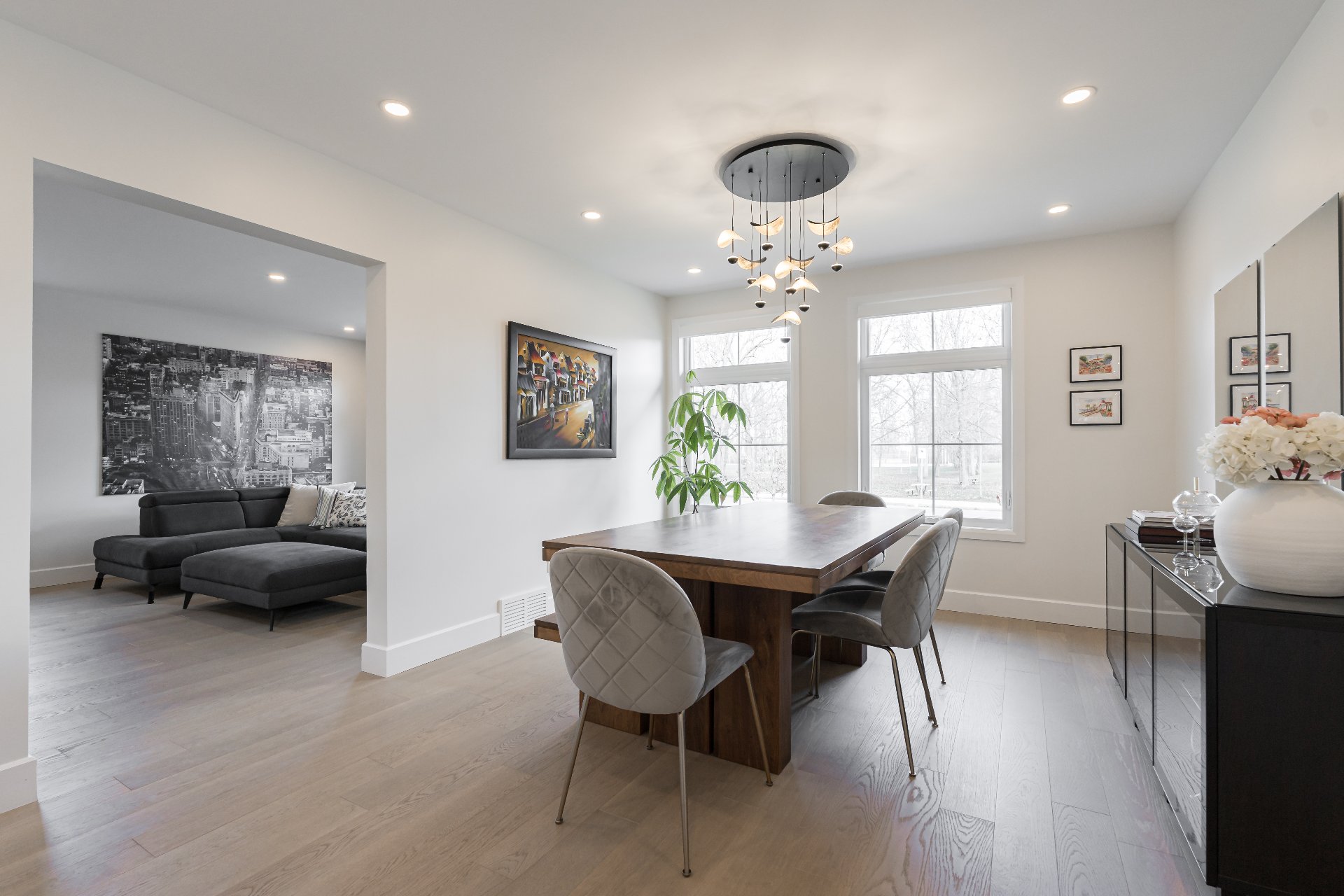 Welcome to Beaconsfield's prestigious Sherwood area. This fully remodeled 4-bedroom, 3.5-bath home is a masterpiece. The entire interior was reimagined. An open kitchen and dining space stretches from end to end, with custom cabinetry, quartz countertops. Engineered oak floors flow throughout both main and second floors. The newly enlarged patio doors and windows flood the home with light. Upstairs, a huge primary suite offers a luxurious ensuite and an oversized walk-in closet. The basement is fully open concept, a bedroom, a laundry room , and ample storage. Outside, enjoy new landscaping, irrigation, driveway, and deck.