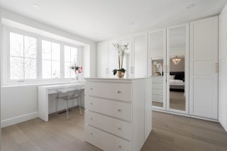 On the second floor, the grand primary suite boasts a spacious ensuite bath and a full bedroom-sized walk-in closet overlooking the front. Two additional generous bedrooms share a beautifully renovated bath--all with heated ceramic floors.