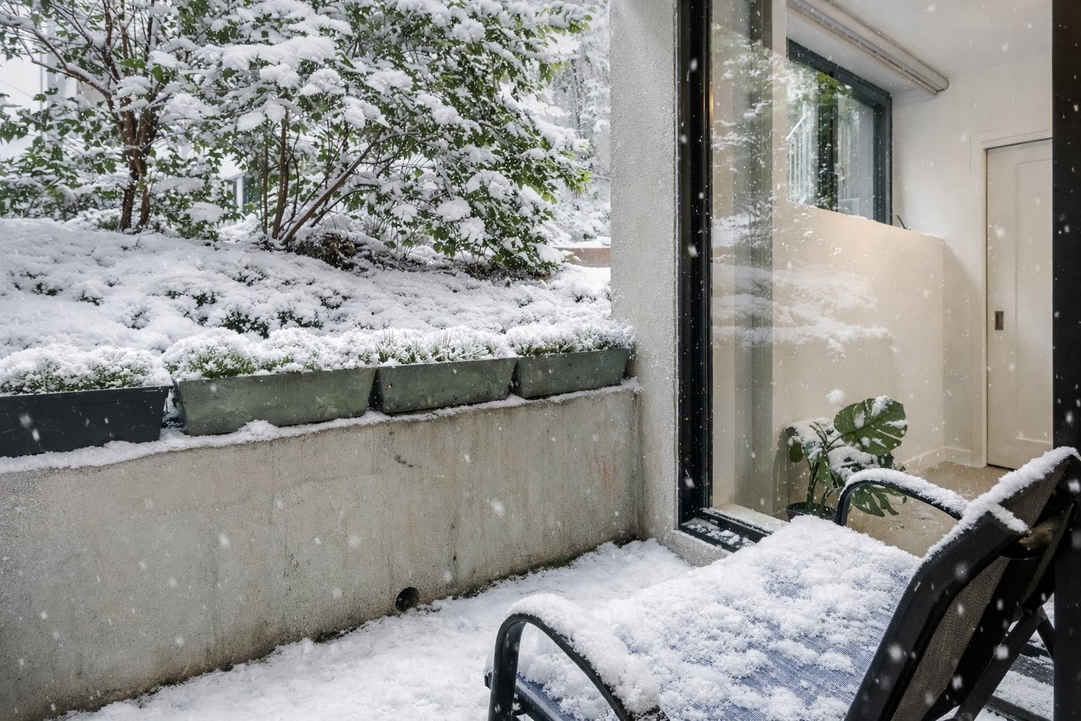 -Private balcony surrounded by greenery, offering privacy