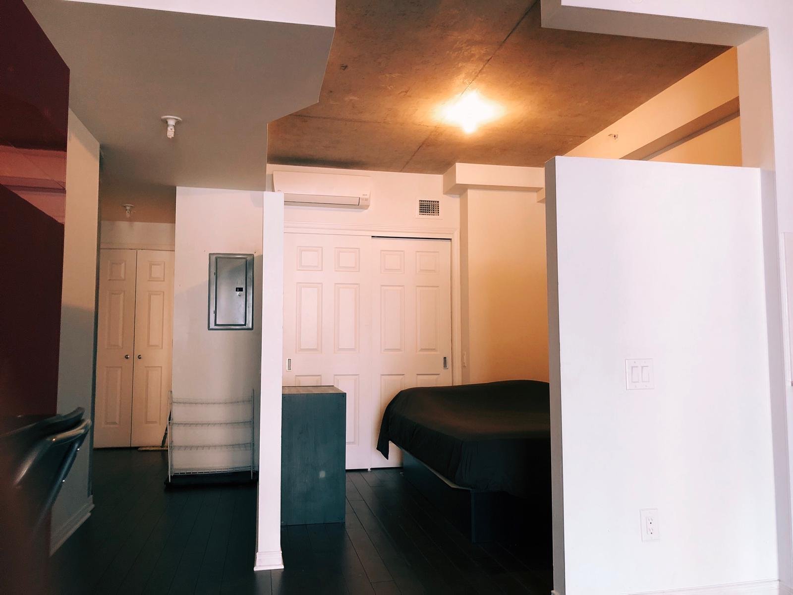 Welcome to 1205 Mackay #415 -- A wonderful Loft in the Heart of Downtown Montreal. Experience modern urban living. Perfectly located just steps from Concordia University and a short distance to McGill, this vibrant neighborhood offers unparalleled convenience with grocery stores, pharmacies, cafés, boutiques, restaurants, and more just around the corner. Only a 2-minute walk to Concordia Metro station, making commuting effortless. Ideal for students. young professionals or a pied-a-terre seeking comfort, style, and city access all in one.