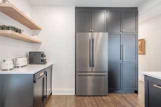 - Cuisine de chef avec armoires en bois haut de gamme et système de garde-manger